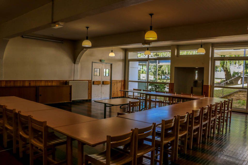 Le service de restauration est installé dans un bâtiment indépendant composé d’une chaine de self-service et de 3 salles à manger destinées aux élèves d’une capacité d’accueil en simultané de 240 places.